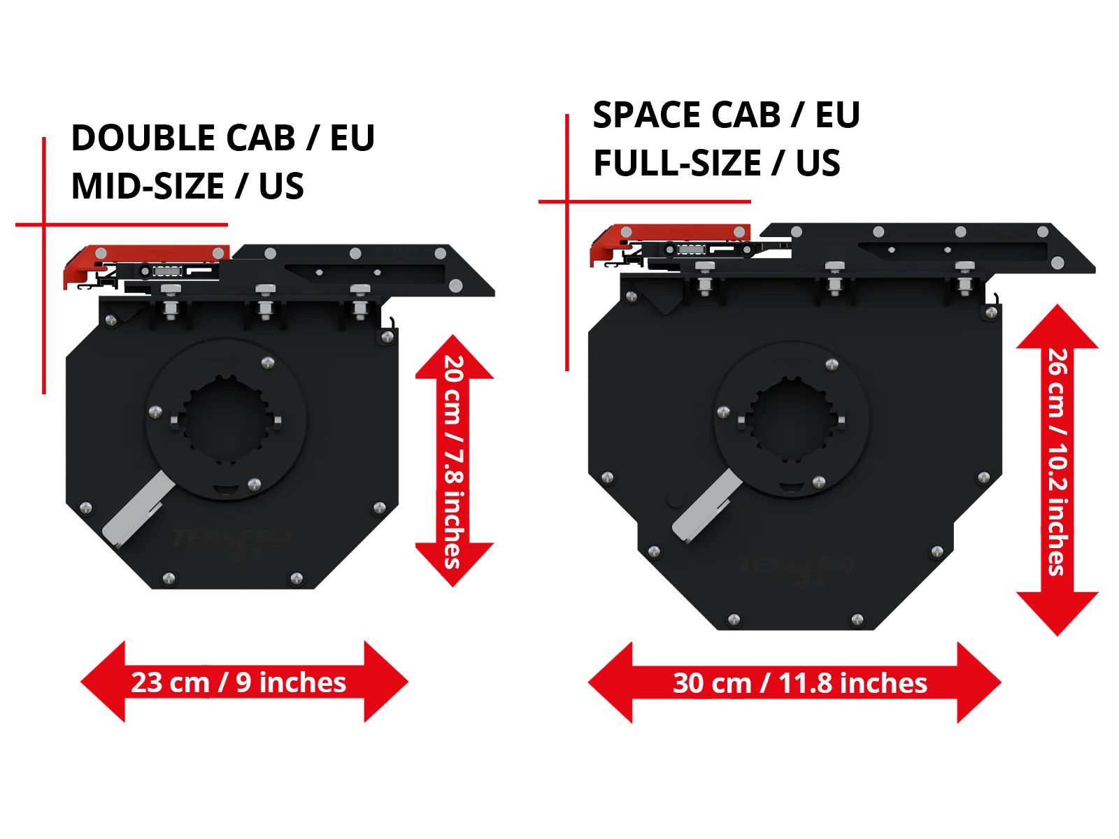 | ✓ Innovatives & Kompaktes Design Mit einem fortschrittlichen Design, bei dem die Endleiste sanft in den Kanisterbereich zurückgleitet, und den kleinsten Kanisterabmessungen auf dem Markt – nur (20cm/7.8 inches x 23cm/9 inches (HxW) (bzw. (30cm/11.8 inches x 26cm/10.2 inches (HxW) für Space Cab/Single Cab/American Modelle) – maximiert diese Lösung die Ladekapazität sowohl in der Länge als auch in der Höhe. Im Gegensatz zu den Wettbewerbern, bei denen die Endleiste über den Kanister hinausragt, ermöglicht dieses Design eine effizientere Raumnutzung ohne Funktionseinbußen. | ✓ | ✓ | X |